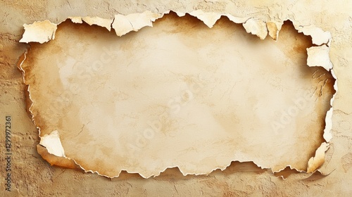 Torn parchment paper with a textured background, creating a vintage and rustic feel