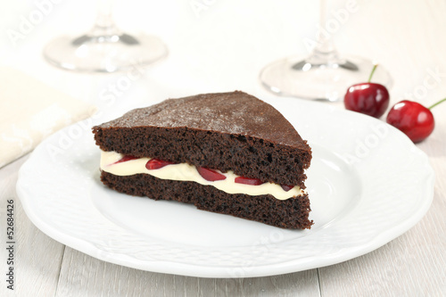 torta al cacao con crema ciliege su tavolo
