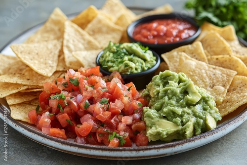 Tortilla chips, salsa, guacamole, appetizer