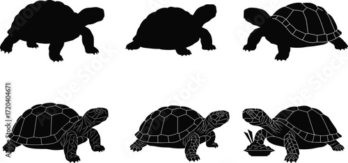 tortoise, animal, silhouette, shell, reptile, crawl, walk, rest, icon, vector, illustration, black, white, nature, desert, anatomy, behavior, wildlife, slow, design
