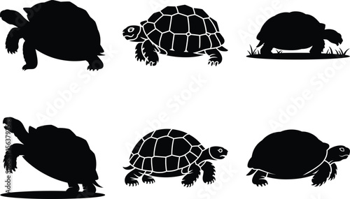 Tortoise Silhouette SVG, Tortoise Vector Art, black and white Background. Sea Turtle illustration.