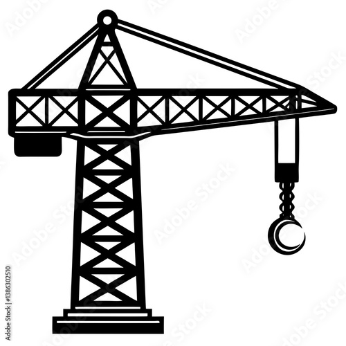 Tower Crane Silhouette Black Vector – High-Quality Construction Graphic