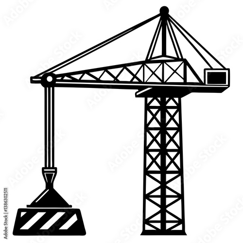 Tower Crane Silhouette Black Vector – High-Quality Construction Graphic