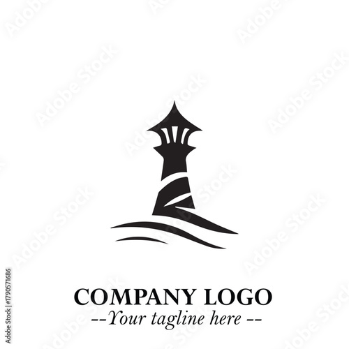 Tower Logo Symbol in Black on the White Background with Simple Modern Architecture Design