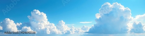 Towering cumulus clouds in clear cerulean sky, high altitude, cloud formations, sunny