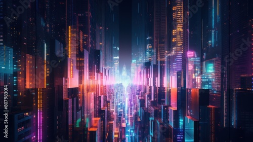 towering skyscrapers adorned with pulsating neon displays,
