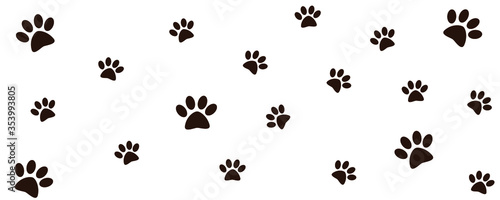 Track of cat dog tracks, footprint, design. Footprints of cat or dog on white background