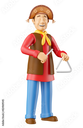 Traditional Brazilian forró musician with triangle in 3d render illustration with transparent background