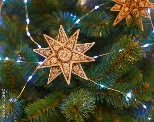 Traditional christmas or new year decorated fir tree
