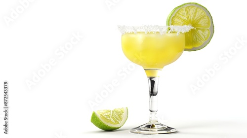 Traditional Margarita Cocktail Isolated on White Background