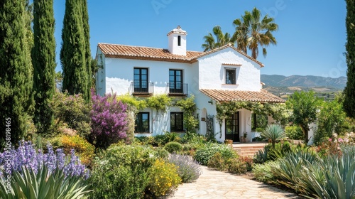 Traditional Mediterranean villa with white walls, terracotta roofs