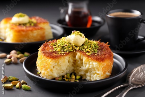 Traditional Middle Eastern Dessert with Pistachio and Syrup – Kunafa Served with Tea
