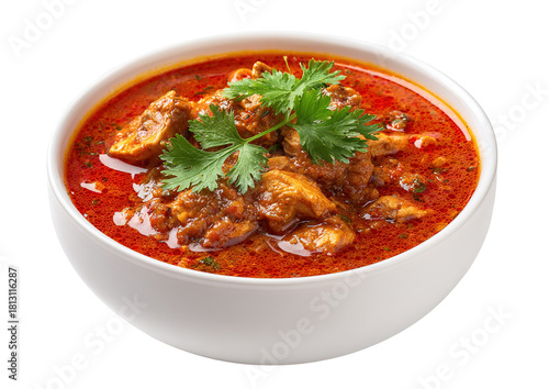 Traditional Thai Massaman curry with tender beef chunks, potatoes, and rich coconut gravy served alongside steamed jasmine rice.