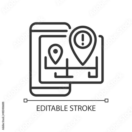 Traffic regulation pixel perfect linear icon. Navigation information on mobile app. Internet of Things. Thin line illustration. Contour symbol. Vector outline drawing. Editable stroke. Arial font used