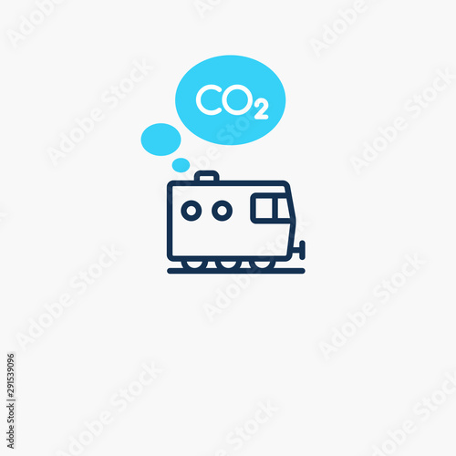 Trains co2 carbon dioxide emission symbol. Flat symbol isolated on light background.