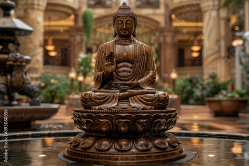 Tranquil Amaravati Buddha Teaching Enlightenment on Lotus Throne in Serene Landscape