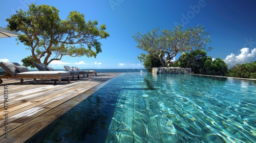 Tranquil atmosphere surrounding the clear waters of AI generated illustration