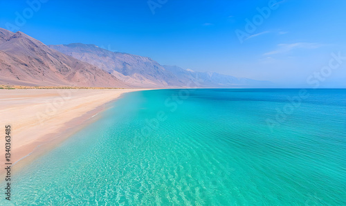 Tranquil Beach Landscape with Clear Blue Water and Rocky Shoreline