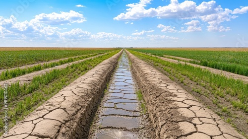 Tranquil Countryside Road Winding Through Lush Green Fields Under Scenic Cloudy Sky