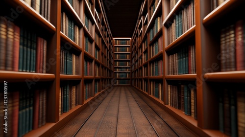 Tranquil Library Corridor with Wooden Shelves and Rows of Colorful Books