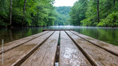 Tranquil nature scene wooden path calm water lush greenery serenity escape