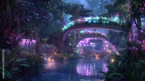 Tranquil Night in a Quantum-Infused Botanical Garden - Futuristic Concept Artwork