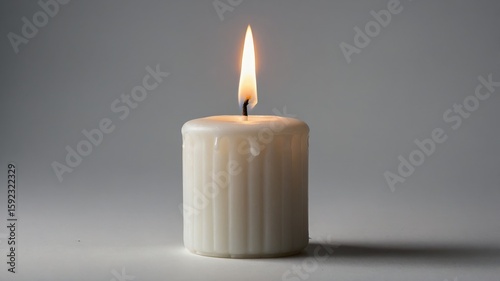 Tranquil scene with lit candle on solid background