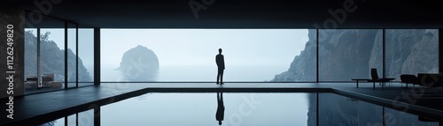 Tranquil Serenity: A Man's Solitary Reflection in a Vast, Serene Landscape