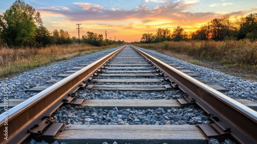 Tranquil Sunset Glow Over Abandoned Railway Tracks
