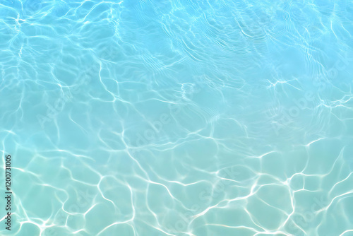 Tranquil turquoise water surface reflects sunlight creating gentle ripples and caustics gracefully.