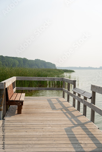 Tranquil Wooden Pier at Rice Lake State Park Overlooking Serene Waters