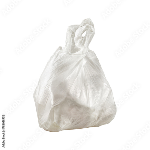 Translucent plastic bag filled with contents, isolated against white backdrop