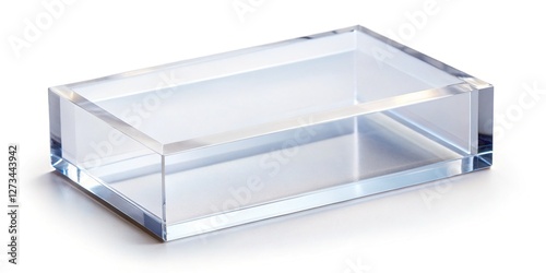 Transparent Acrylic Block, Blank Rectangular Shape, Isolated on White Background, Perfect for Mockups and Design Projects