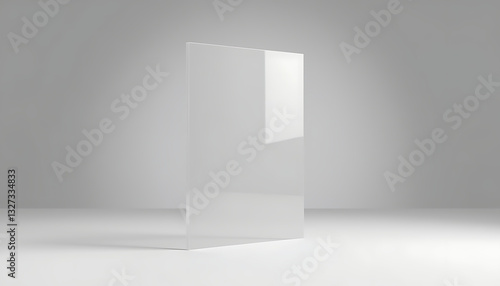 Transparent acrylic business card mockup standing on a neutral background with soft lighting.