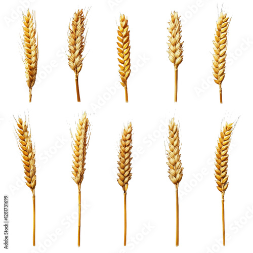 [Transparent Background PNG]Collection of Wheat Ears Isolated on White Background