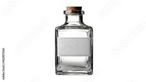 Transparent bottle with blank label, message concept, isolated on white