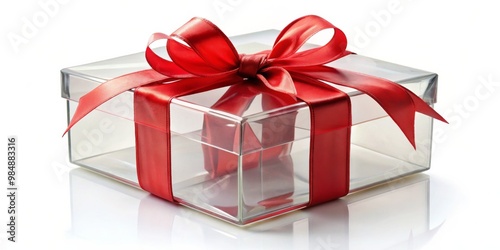 Transparent Gift Box with Red Ribbon, Gift, Present ,Holiday