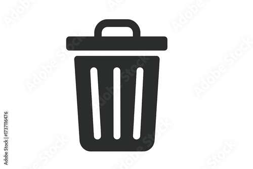 Trash can icon symbol for delete remove action, flat style design vector illustration for app UI, website logo, isolated on white background, minimalist trash bin graphic