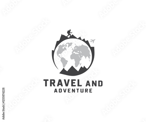 Travel and Adventure Logo – Minimalist Globe and Mountain Branding Design