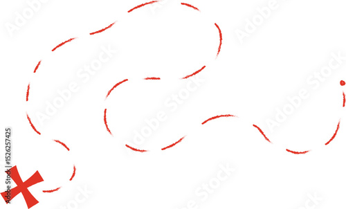 Treasure map element. A reddashed line and red X mark ink on the map, the treasure map with a dotted line, X marks the spot, dashed line to an X