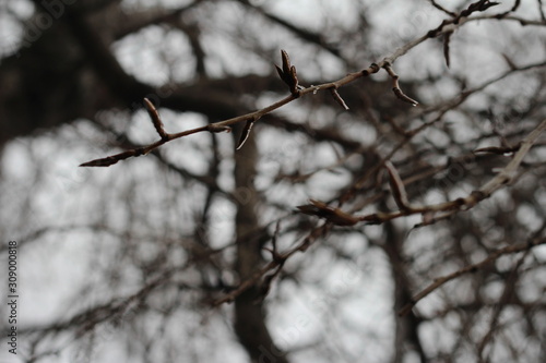 tree branches on a foggy morning