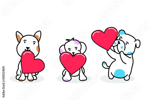 tree dogs holding red love vector