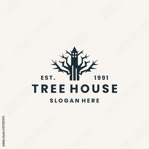 Tree house logo vector hipster vintage icon illustration