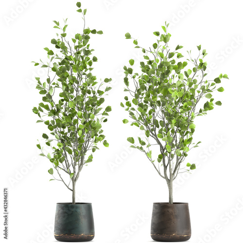 tree in a rust pot isolated on white background