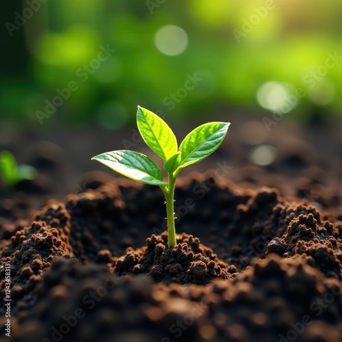 Tree seedling in deep hole covered with soil and branches, nature conservation, seedling, tree