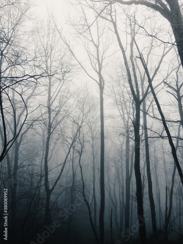 tree tops on the fog with negative space
