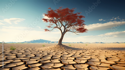 Trees in dry land, climate change concept