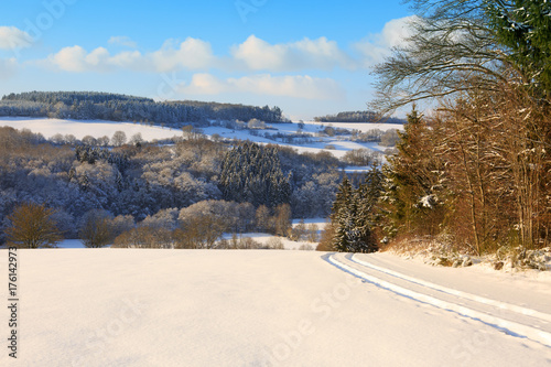 Trees with snow and winter road.