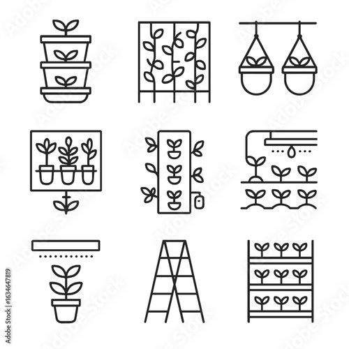 Trellis vertical icons drip vines pots vector gardening planters icon herbs irrigation