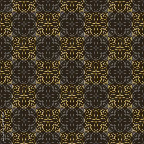 Trendy background pattern with ornate decorative ornamentation on black background, wallpaper. Seamless pattern, texture. Vector art